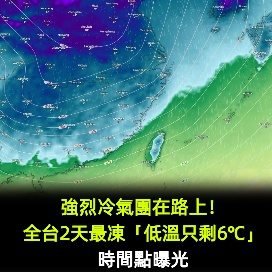 強烈冷氣團在路上!全台2天最凍「低溫只剩6℃」時間點曝光