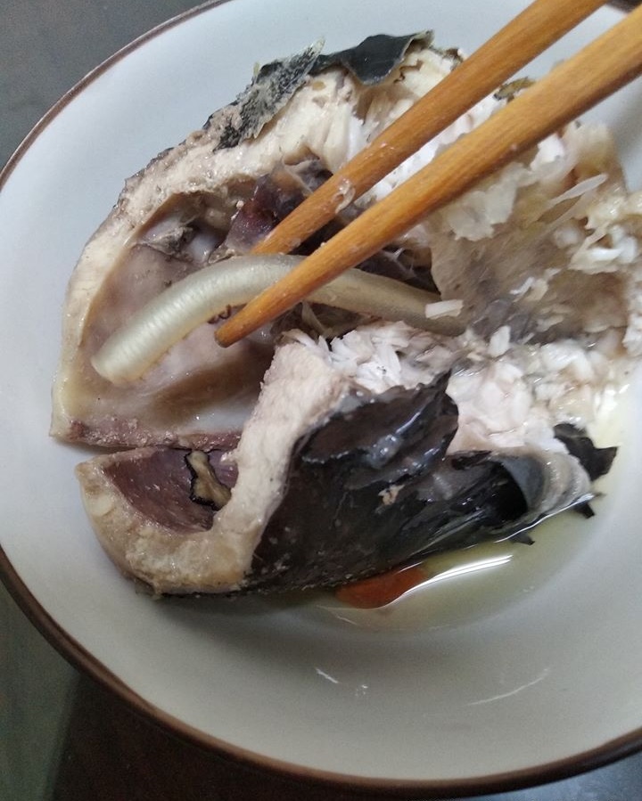 根據《TVBS新聞網》報導,這位女網友在臉書社團「廚藝公社」發文,表示自己有位很喜歡釣魚的朋友,而日前對方幸運釣到了一條「鱘龍魚」後,就決定把成果轉送給她,結果就在她拿回家烹煮後,吃到一半時,突然從魚肉裡夾出來一條銀黃色的不明物體,嚇得她趕緊放下筷子,上網問道:「請問這個是什麼?從鱘龍魚身上取出來的,貌似長在魚骨裡面?不要告訴我是蟲就好,我已經吃掉一塊肉了...」