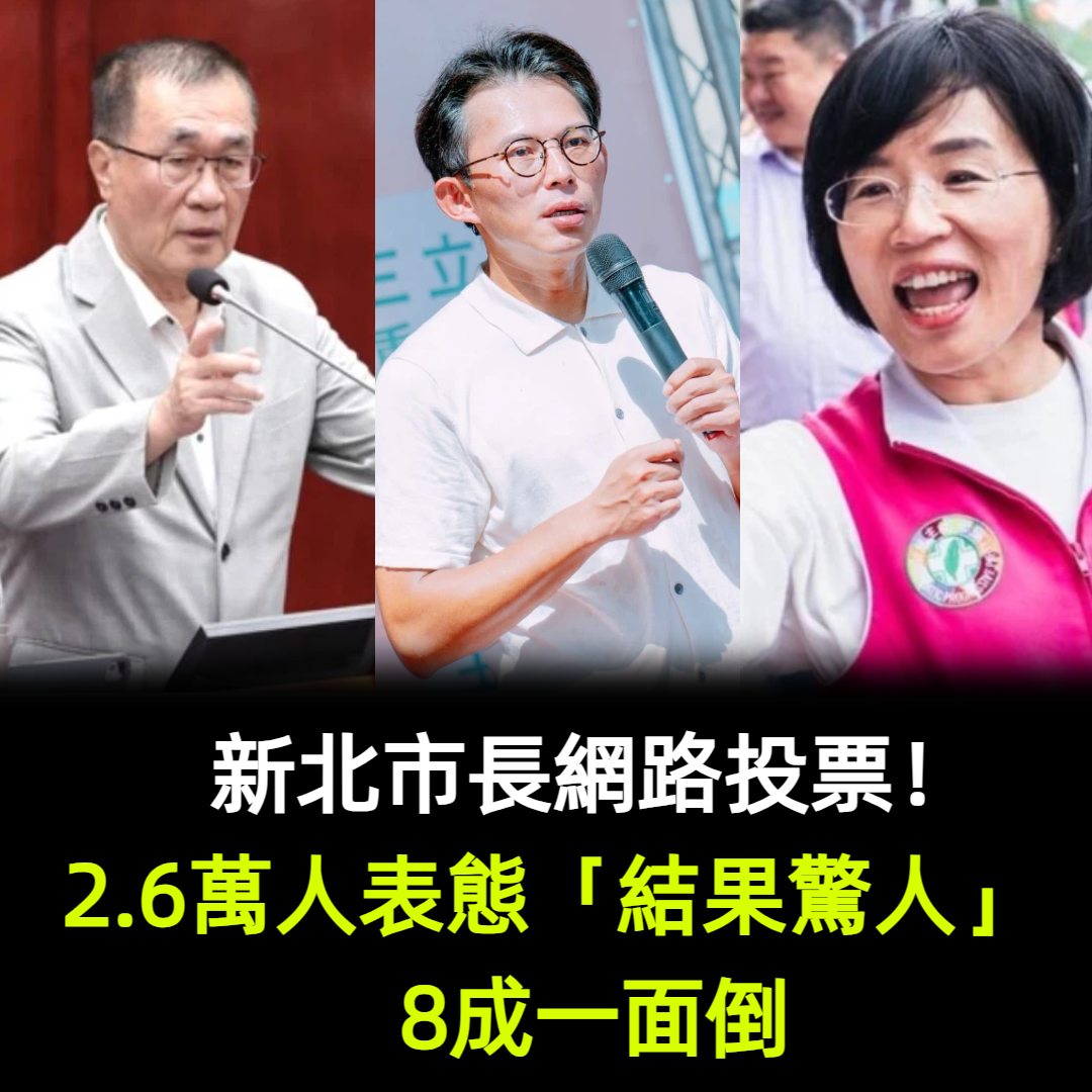 針對新北市長選戰熱度,《壹蘋新聞網》發起線上民意調查,詢問民眾「若由李四川、黃國昌、蘇巧慧角逐新北市長,您最看好誰?」吸引高達2萬6224位網友參與投票,結果相當驚人。