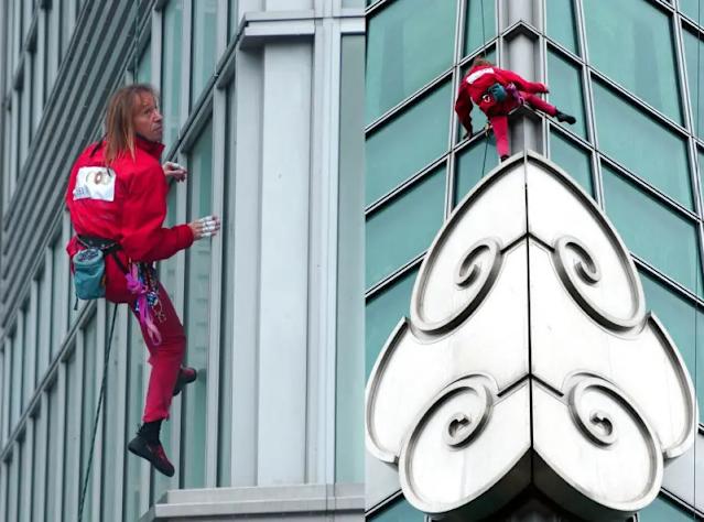 羅伯特回憶,2004年他受邀挑戰當時全球最高建築台北101,原本計畫採取徒手方式攀爬,沒料到當日天候極差,綿密雨勢導致玻璃外牆溼滑無比,為了安全考量只能改用繩索輔助。受到惡劣氣候影響,他足足花了將近4個鐘頭才抵達頂端,比預計時間整整多出一倍。