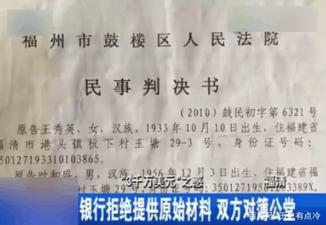 2011年,法院判定,葉老的叔父王賢能在銀行的存款是3123.75美元,銀行單方面的認定葉家人不相信,那麼法院依據憑證的判決,葉家人總該「死心」了吧?然而並沒有,葉家人不僅沒有接受法律的最終審判,還在當年8月份向福建省人民法院再一次提起了訴訟。與上一次的審判結果有所不同,這一次法院判定第一次的審判,關於王賢能賬戶存款數額的證據不足,因此該案件被發回去繼續審核。