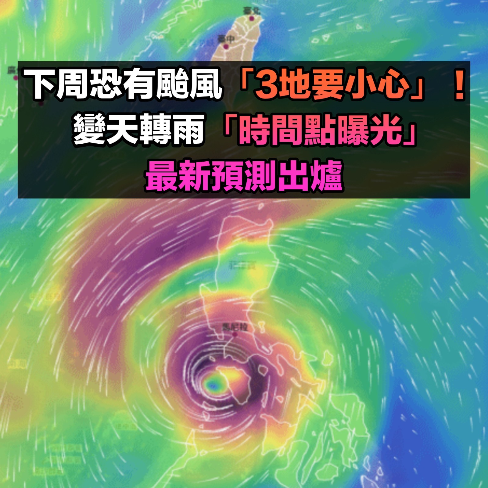 下周恐有颱風!變天轉雨時間曝光「3地要小心」最新預測出爐