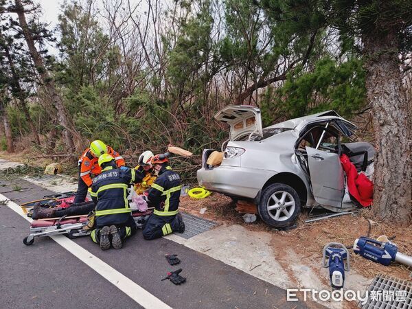 消防單位於當日下午4時17分接獲報案,指稱在縣道203線港子村往赤崁村路段,有自小客車疑似撞上路樹,車內2名乘客受困無法脫身。白沙及西嶼分隊隨即派出3輛消防車、7名救援人員趕赴現場。抵達事故地點後發現,小客車已衝進路旁樹叢當中,車體因撞擊力道過大而嚴重扭曲變形。