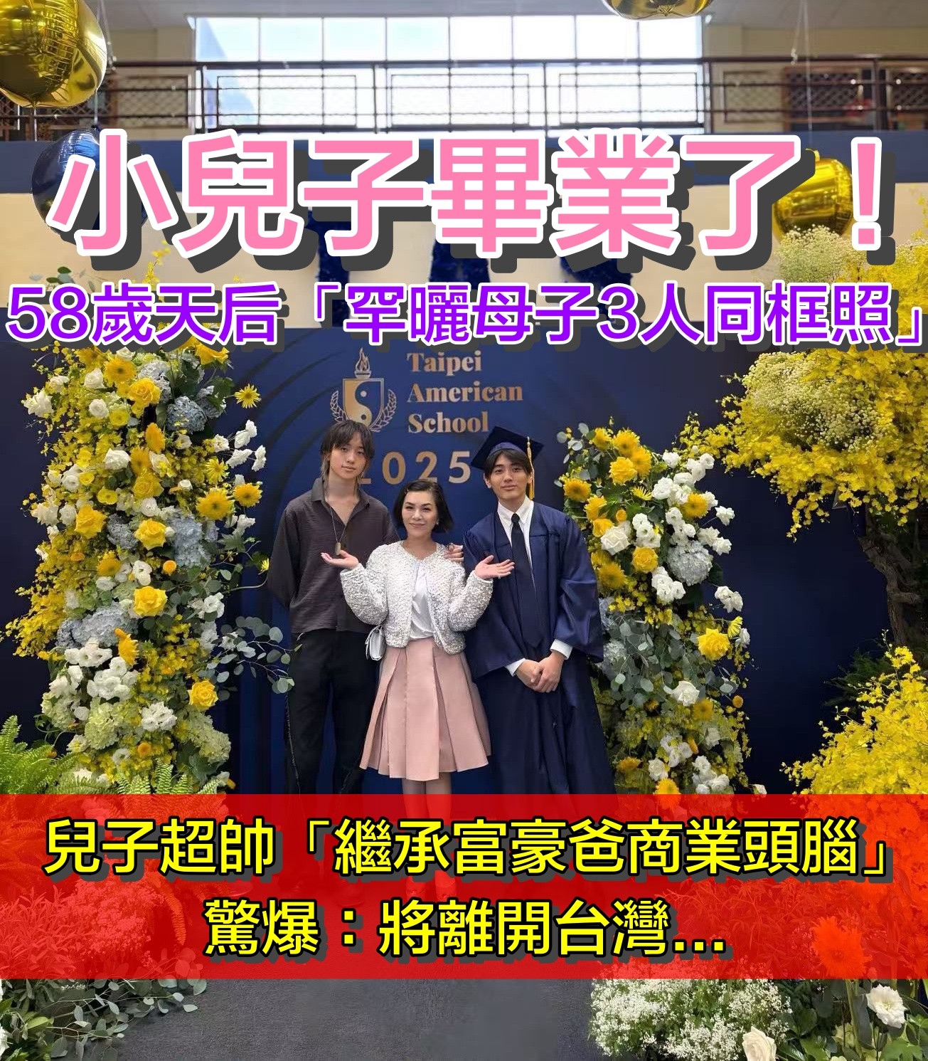 小兒子畢業了!58歲天后「罕曬母子3人同框照」被讚:太會生 近況曝光「他即將離開台灣」