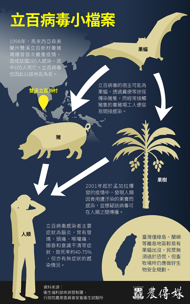 根據《LINE TODAY》報導,亞洲地區驚傳立百病毒感染案例,不只病患染疫,就連照護的醫護人員也遭波及,研判已出現有限度人傳人的狀況,引起各國高度警戒。疾管署副署長林明誠表示,截至一月十九日為止,印度南部喀拉拉邦已通報五起病例,所幸台灣目前未出現相關個案。