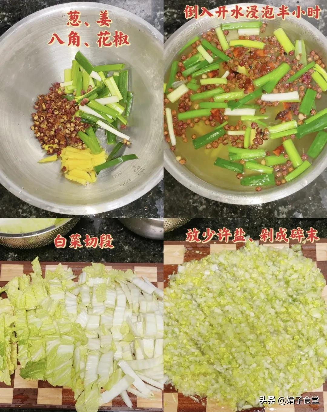 1、先泡一點蔥姜水,碗中加入適量蔥姜、八角、花椒,倒入開水浸泡半個小時,蔥姜水晾涼以後再用。