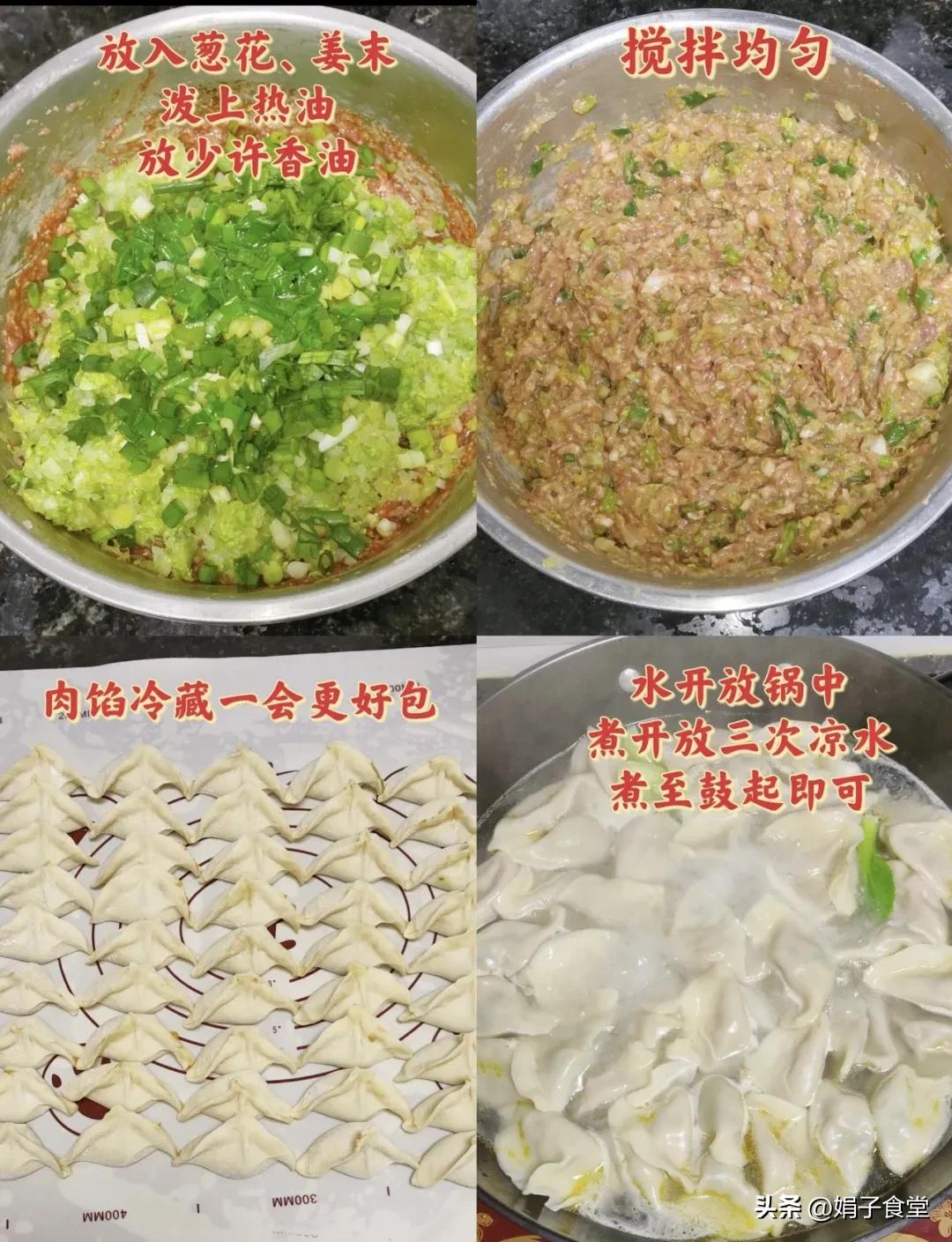 5、肉餡冷藏一會更好包,按照自己的手法包好餃子,煮熟即可開吃。