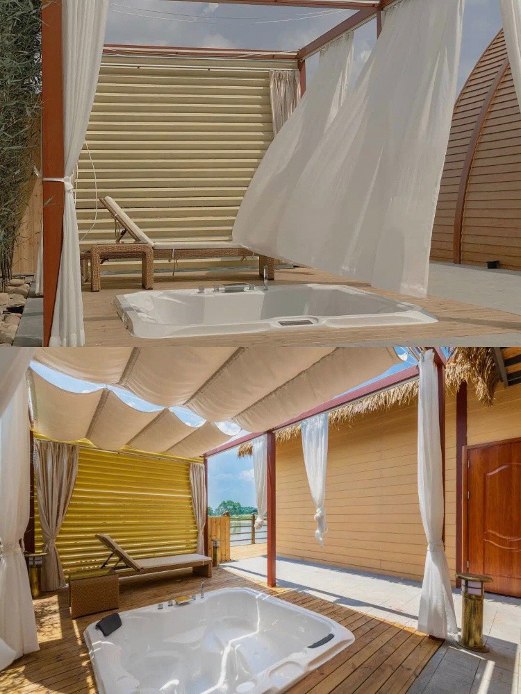 位於廣東清城區的「清遠月景灣度假民宿」,整間民宿架在水面上,建築外觀以漁船為靈感,整個打造成水上船屋的樣子,每棟都是獨立的不互相打擾,而且還都有戶外露臺區可以欣賞水上風光,再加上露天大浴缸,彷彿來到東南亞旅遊般享受~