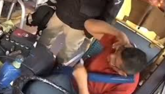 監視器畫面記錄下整起駭人過程,只見伊瓦拉試圖安撫對方情緒,卻依舊遭到連續攻擊。該名男乘客先是踢打司機手部,接著揮拳攻擊臉部,最後竟從背包拿出藍色金屬保溫瓶,朝司機頭部重擊,導致伊瓦拉當場失去意識。