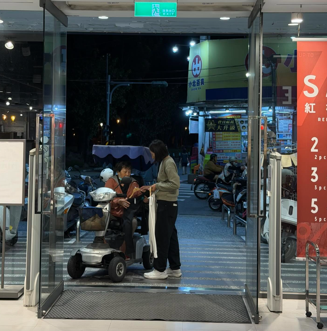 根據《yahoo新聞》報導,擁有7.6萬追蹤者的Instagram網紅「翊樺」日前在社群平台上分享一段影片,記錄下她18日夜晚在服飾品牌NET門市外,親眼目睹令人動容的一幕。當時有位阿嬤因為乘坐電動代步車,身體狀況讓她難以順利走進店內選購,沒想到店內員工看見這個情況後,下秒的舉動卻讓無數網友感到暖心。