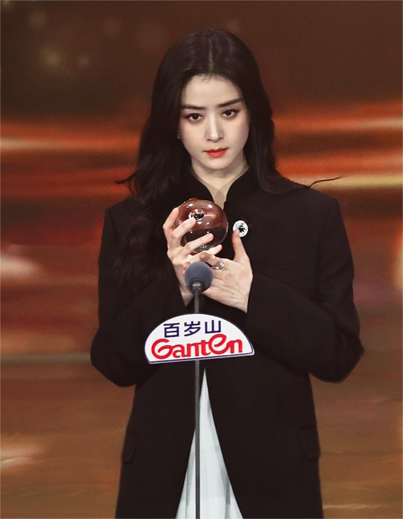 這次盛典,她跟著劇組亮相,沒有選擇華麗禮裙,而是穿了一身簡約米色西裝,俐落幹練、優雅大氣。