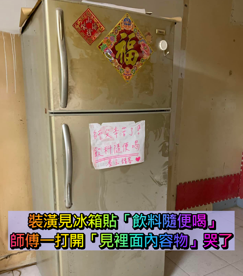 工地裝潢見冰箱上貼「飲料隨便喝」!一開門「裡面這2物」讓他秒泛淚:心情瞬間變好