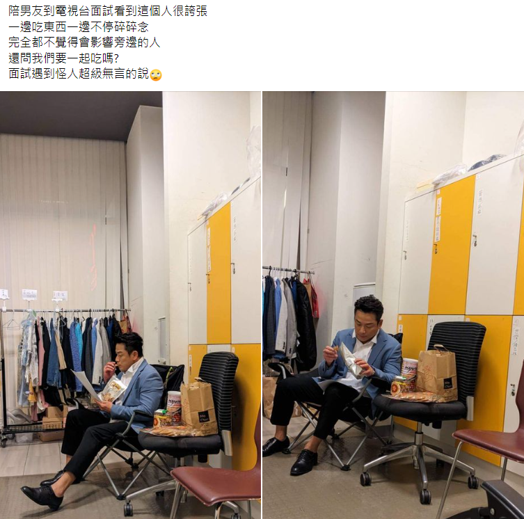 據《三立新聞》報導,先前一位女網友在爆怨公社中提到,她陪著男友到電視台面試,看到一個誇張的人:「一邊吃東西一邊不停碎碎念,完全都不覺得會影響旁邊的人,還問我們要一起吃嗎?」讓原PO不禁錯愕直呼:「面試遇到怪人超級無言!」