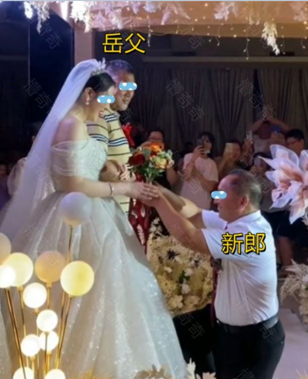 但在賓客曝光的畫面中,唐男在婚禮節目上向女方單膝下跪,並誠懇地遞上鮮花。而看似他女兒的準新娘,則在爸爸的攙扶下來到紅毯中央,許多賓客也趕忙拿出手機記錄這感人一刻。不過,讓許多人訝異的是,雖然主角是這對新人,但因為岳父的外貌比起有些年紀的新郎,甚至更加年輕,也意外造成話題。