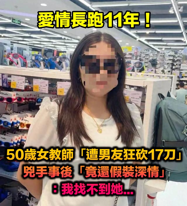愛情長跑11年!50歲女教師「遭男友狂砍17刀」原因曝光 兇手「事後假裝深情」著急詢問:我找不到她...