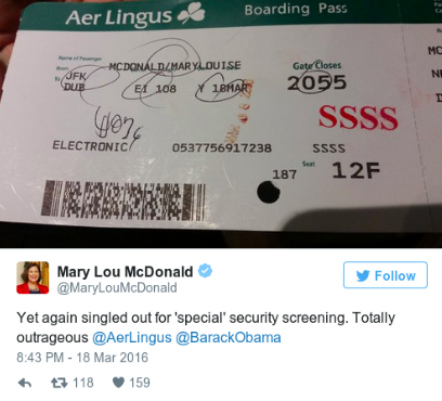 通過二次安檢並排除嫌疑後,「TSA」工作人員會在登記證上標註一些特別的符號,例如一個手寫的「SSSS-10」或者「SSSS」旁邊三個小星星之類的。