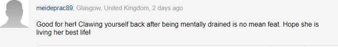「這對她很好!在精神耗盡後重新振作起來並非易事,希望她今後能過得更好!」