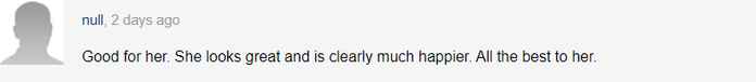 「這對她很好啊!她看起來狀態很好,顯然變得更快樂了,祝她一切順利~」