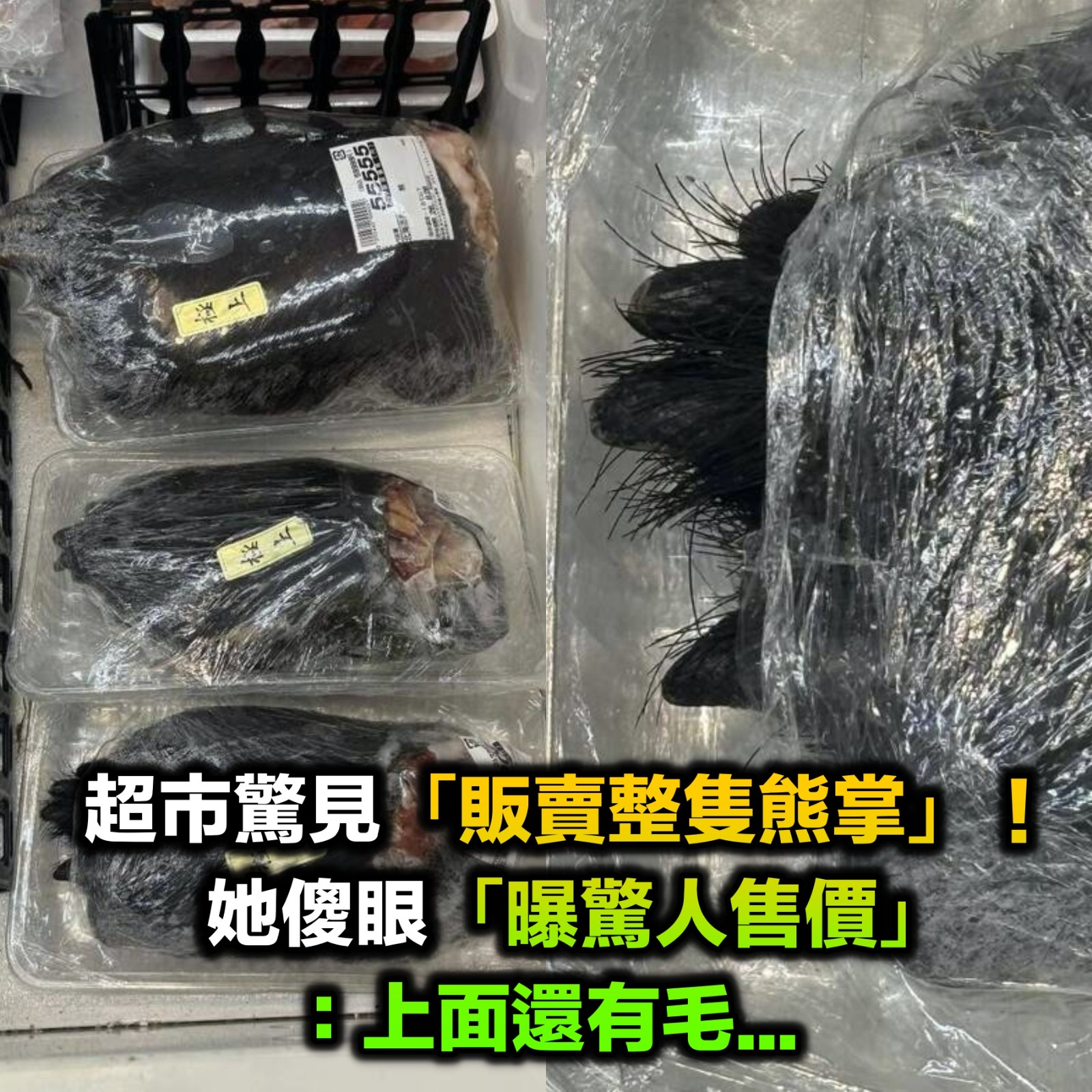 生鮮超市驚見「販賣整隻熊掌」!她傻眼「曝驚人售價」:上面還有毛...