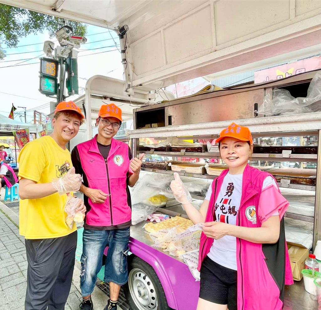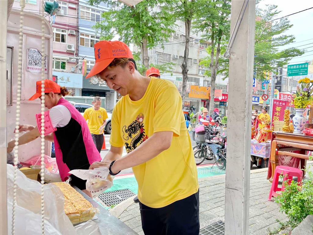據了解,陳顯政這次是響應好友、「御上品」古早味蛋糕店經營者張朝林夫婦的善舉,當天他們共同發放超過3000顆現烤蛋糕,慰勞辛苦的進香信眾們。張朝林夫婦不僅在進香期間發放福食,更連續5年在山邊媽祖廟義賣蛋糕,所得全數捐作建廟基金,累計捐款已逾30萬元。