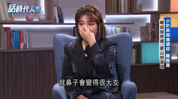 不僅看起來很怪,令她最苦惱的是,早期打的小針美容有後遺症,填充物已和組織緊密結合,想要重新進行鼻部整形需要先清除舊有組織,這不僅需要漫長恢復期,還會影響她的工作行程,目前她只能依靠玻尿酸來調整外型,但效果仍不盡理想,鼻子反而「越打越大支」。